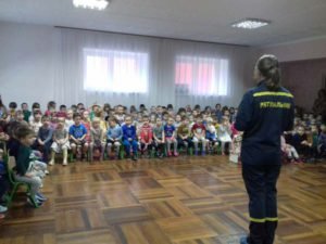 Так, всіх вихованців садочку зібрали в актовому залі і інспектор розповіла дітям про важливість і специфіку своєї роботи, наголосила на важливості професії та ролі її у сучасному житті. Під час заходів в черговий раз нагадали, що потрібно робити, аби не сталося пожежі та як діяти у разі її виникнення. З однієї з груп погралися в гру пожежі, де дітки мали відпрацювати дії при евакуації. Діткам також наголосили, що заборонено торкатись невідомих преддметів, які можуть бути вибуховими і що робити у разі їх виявлення.
