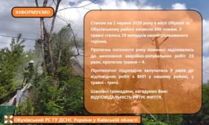 Станом на 1 червня 2020 року в місті Обухові та Обухівському районі виникло 346 пожеж. У травні сталось 19 випадків неконтрольованого горіння.