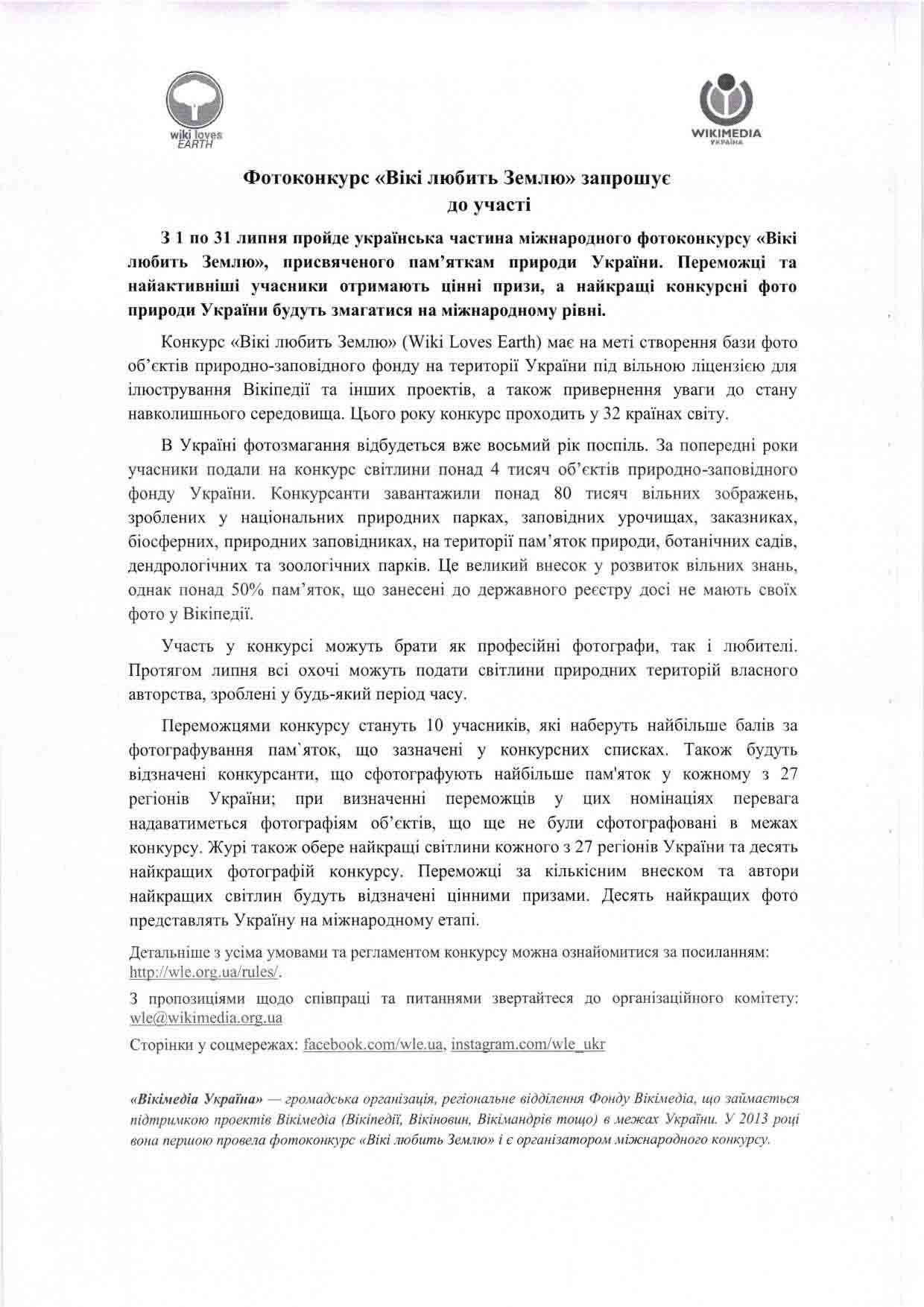 Фотоконкурс Вікі любить Землю запрошує до участі