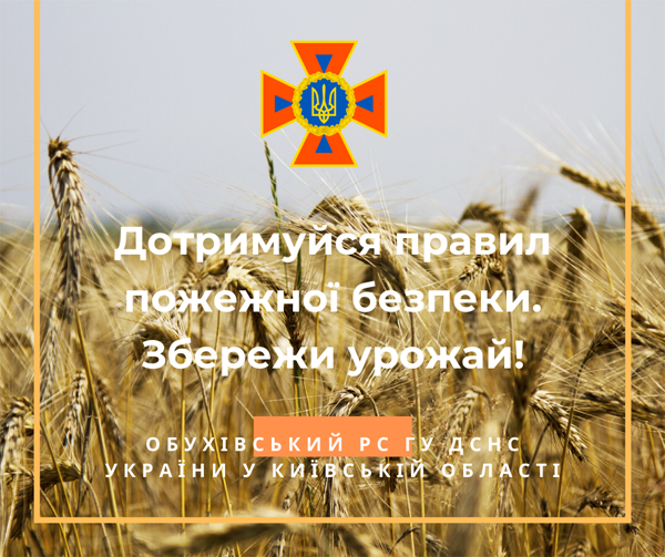 Будьте вкрай обережними у поводженні з відкритим вогнем; не паліть та не розводьте багаття поблизу хлібних і лісових масивів; стежте за тим, щоб діти не бавилися сірниками, запальничками, смолоскипами; не полюйте в хлібних масивах та поблизу них; при відпочинку розміщуйте стоянки не ближче 100 метрів від хлібних ланів.