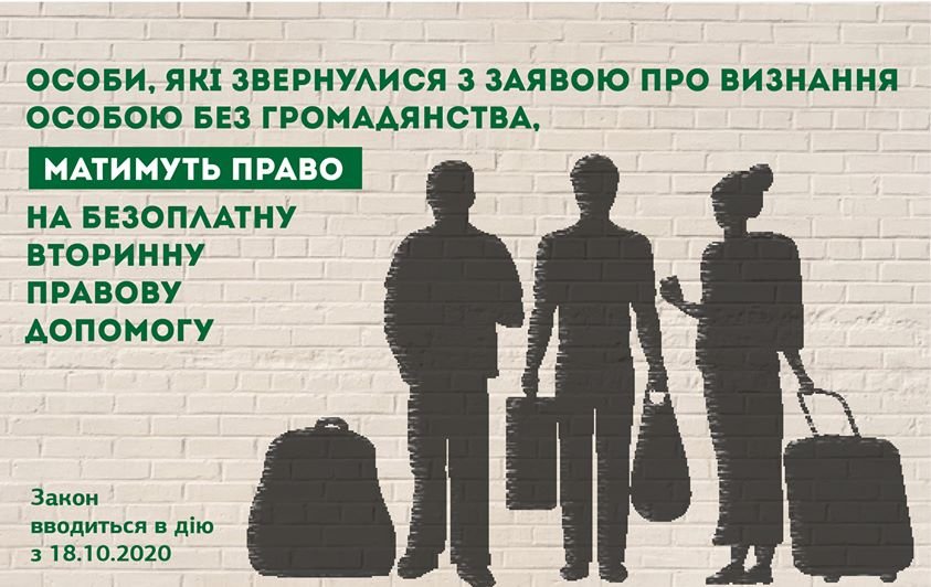 Особи, які звернулись з заявою про визнання особою без громадянства, отримали право на ⚖️ безоплатну вторинну правову допомогу.