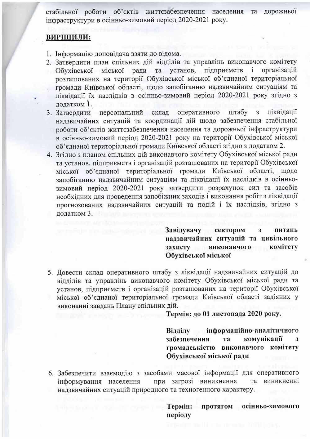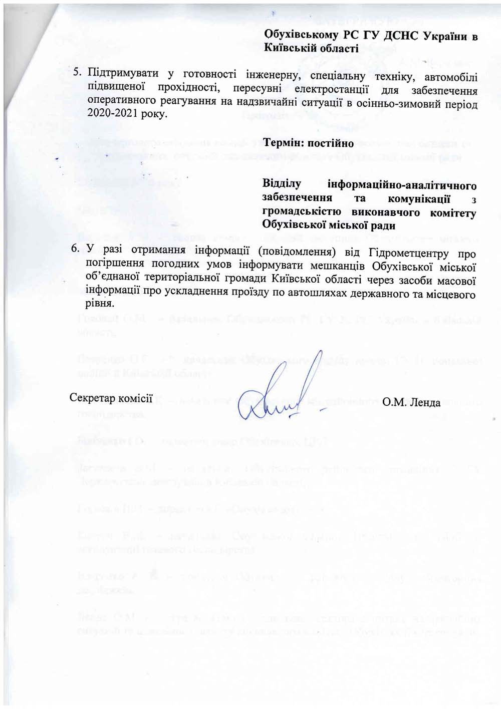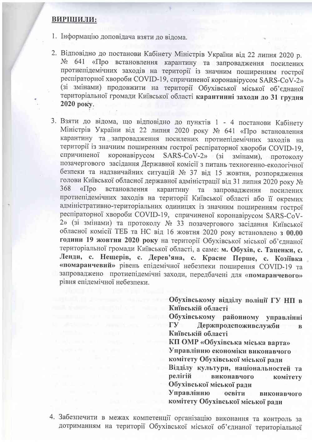 Протокол позачергового засідання з питань техногенно-екологічної безпеки та надзвичайних ситуацій виконавчого комітету Обухівської міської ради від 17.10.2020