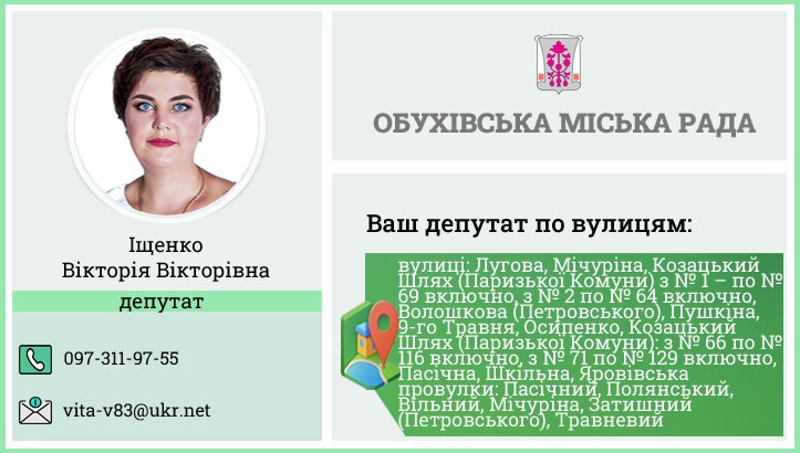 Адреса місця проживання: місто Обухів, Обухівський район, Київська область.