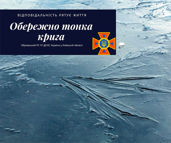 У зв’язку із пониженням температурних показників та морозною погодою на водоймах Обухівського району сформувався нестійкий льодовий покрив. Часом достатньо одного кроку аби миттєво опинитися у крижаній воді.