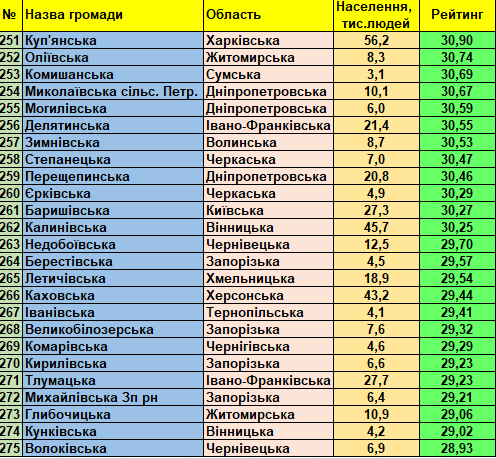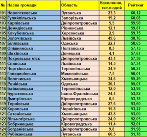 Фонд «Регіональний центр економічних досліджень та підтримки бізнесу» представляє триста кращих малих та середніх громад України (до 150 тис. мешканців) станом на 01.01.2021 року відповідно до «Всеукраїнського рейтингу інституційної спроможності та сталого розвитку громад».
