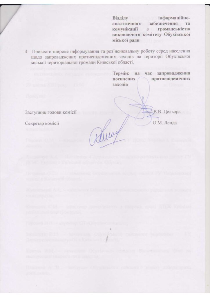 Протокол позачергового засідання з питань техногенно-екологічної безпеки та надзвичайних ситуацій виконавчого комітету Обухівської міської ради від 09.04.2021
