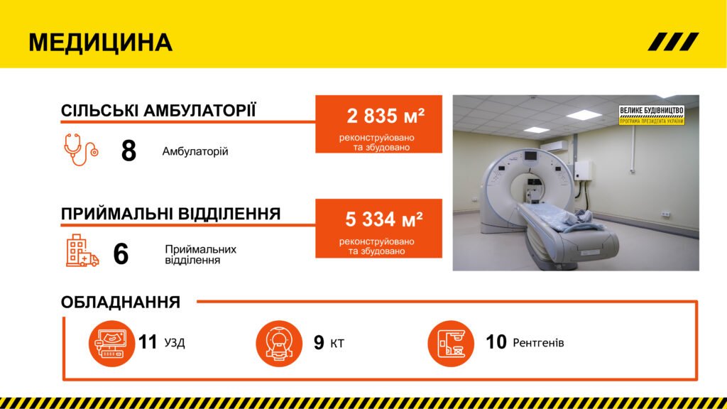 У 2021-му році на Київщині реконструювали та збудували вісім сільських амбулаторій і шість приймальних відділень в опорних лікарнях. Загально роботи охопили понад 8 тис. м².