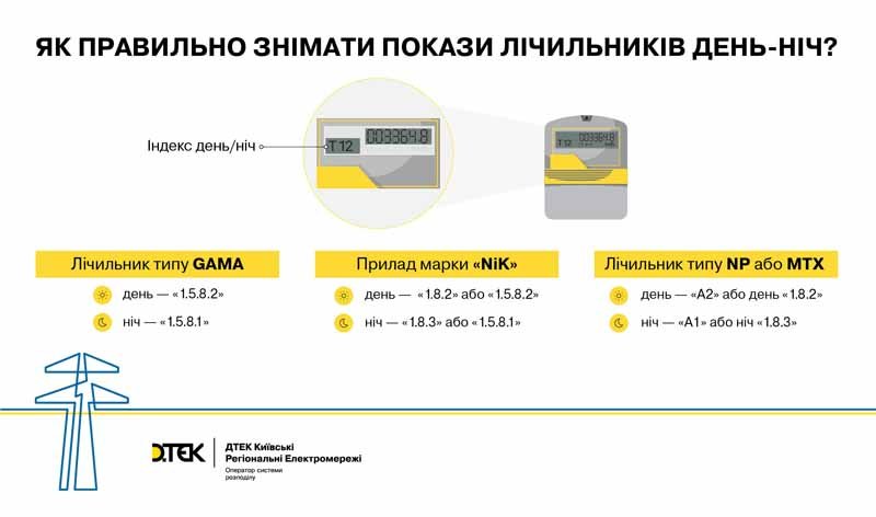 Водночас в ДТЕК Київські регіональні електромережі звертають увагу клієнтів на особливості передачі показів багатозонних приладів обліку. Клієнтам з такими приладами потрібно передавати не одне, а декілька значень — 2 для двозонного («день» та «ніч») та 3 для трьохзонного («пік», «напівпік», «ніч») лічильника. В залежності від моделі приладу, відображення зони має різні індекси. У клієнтів ДТЕК Київські регіональні електромережі вони такі: