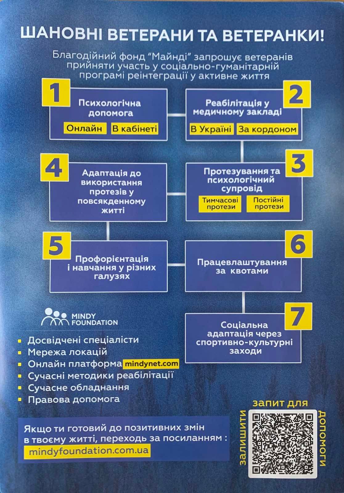 Особлива увага приділяється постраждалих із важкими пораненнями та втратою кінцівок.
