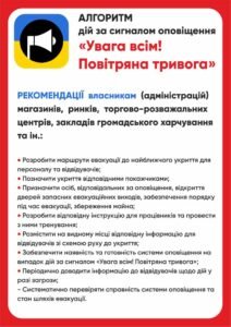 Нижчеподані рекомендації та порядок дій стосуються власників магазинів, ринків, торгово-розважальних центрів, торговельних комплексів та відвідувачів, вчителів та відповідальних осіб під час проведення навчальних занять, власників транспортних компаній та водіїв, персоналу спеціальних закладів з постійним перебуванням літніх людей та осіб з інвалідністю, а також для населення під час перебування вдома чи на роботі.