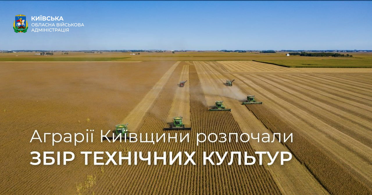 Аграрії Київщини розпочинають збір технічних культур в області, також продовжується збір овочевих. Про це повідомив голова Київської ОВА Олексій Кулеба в Telegram.