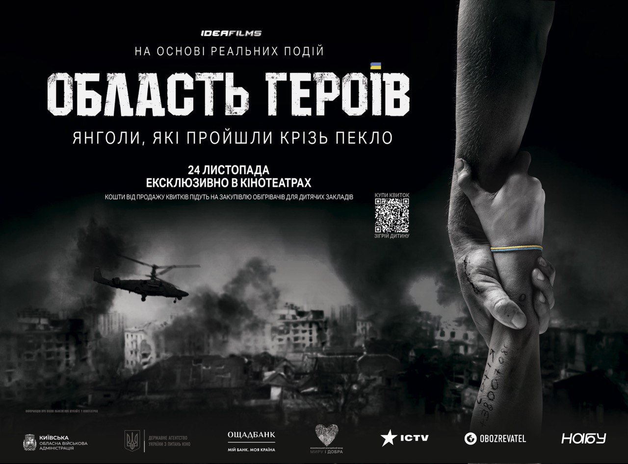 У кінотеатрах України 24 листопада відбудеться прем’єра українського повнометражного фільму «Область героїв». Фільм створює генеральний продюсер Олексій Комаровський у партнерстві з Київською обласною військовою адміністрацією та за сприяння Держкіно України.