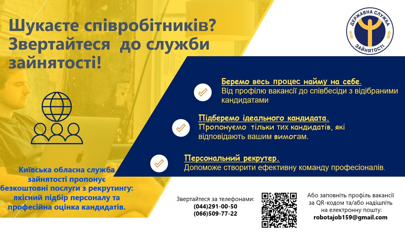Служба зайнятості завжди готова допомогти компаніям створити команду професіоналів. Запрошуємо до співпраці