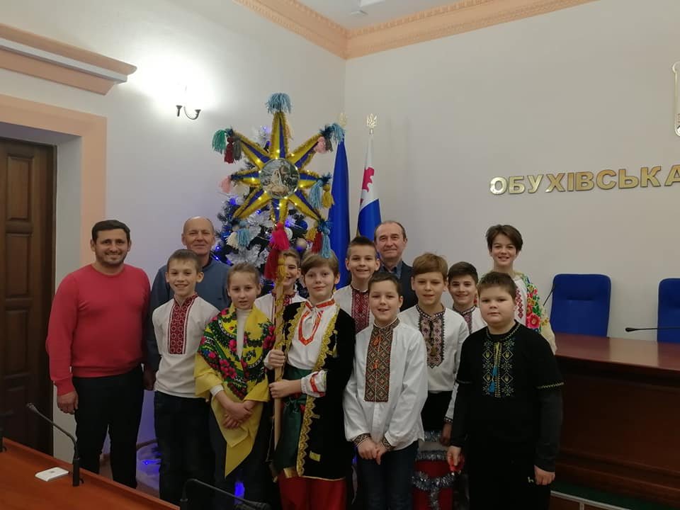 З побажаннями щастя, миру та добра до закладів Виконавчого комітету Обухівської міської ради у Великий Святвечір напередодні Різдва Христового завітали маленькі колядники-школярі з Академічного ліцею 1 ім. А. С. Малишка.