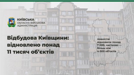 У Київській області продовжуються роботи з відновлення об’єктів, що були пошкоджені та зруйновані внаслідок війни. Загалом відновлено повністю та частково понад 11 000 об’єктів. Про це повідомив заступник голови Київської ОВА Микола Бойко.