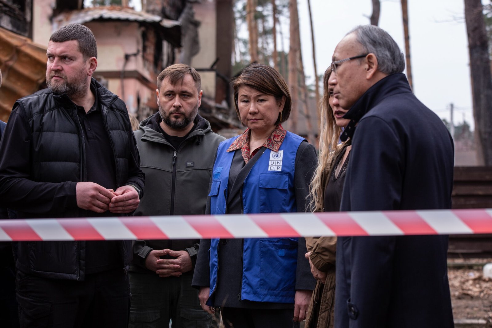 Сьогодні, 24 березня, в Ірпінь завітала делегація Програми розвитку ООН в Україні на чолі з Пані Асако Окаї, помічницею Генерального секретаря ООН, директоркою Кризового Бюро ПРООН. Також на події були присутні Надзвичайний та Повноважний Посол Японії в Україні Мацуда Кунінорі, Постійний представник ПРООН в Україні Яко Сільє, представники ДСНС та місцевої влади. Київську обласну військову адміністрацію представляв заступник голови КОВА Микола Бойко.