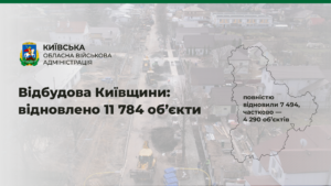 Також триває відбудова об’єктів соціальної сфери. За цей час вже відновлено повністю та частково 187 закладів загальної середньої та дошкільної освіти, 100 закладів охорони здоров’я, 66 ЦНАПів.