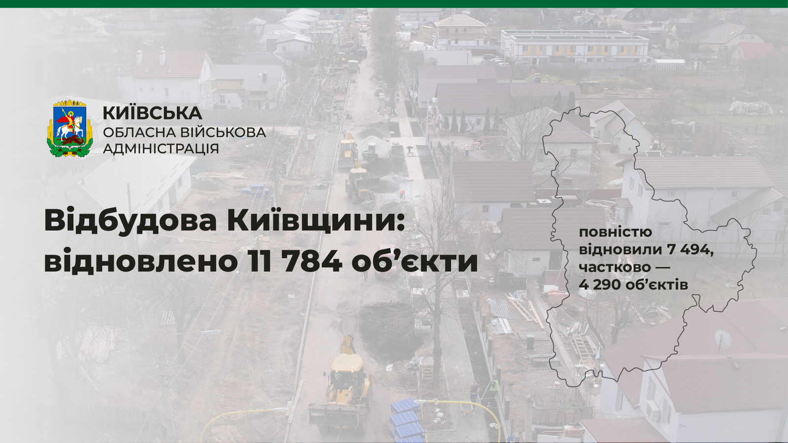 Найбільше відновлено пошкоджених війною об’єктів житлового фонду — приватних та багатоповерхових будинків. Загалом це 10 365 будівель, серед яких 6 478 — відновлені повністю, 3 887 об’єктів відновлено частково, але забезпечено життєдіяльність.