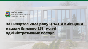 Центри надання адміністративних послуг надають до 548 видів адміністративних послуг. Усього протягом І кварталу 2023 року вони надали близько 231 тисячі таких послуг. Найбільш популярними послугами були: