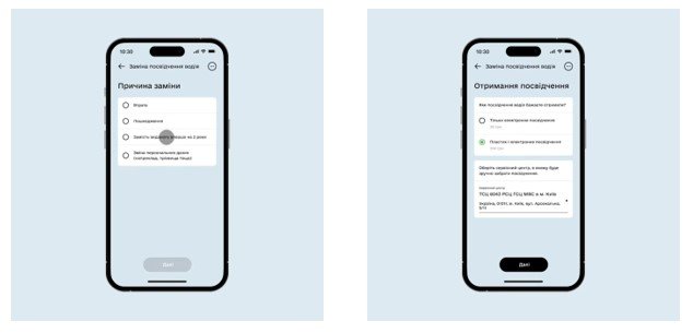 23 травня 2023 року послуга обміну і відновлення посвідчення водія стала доступною в застосунку Дія. Відтепер можна подати заявку на заміну свого водійського через застосунок у кілька кліків. Замовити можна як фізичний пластиковий документ і забрати його у сервісному центрі МВС особисто, так і Е-посвідчення, яке є виключно цифровим і дійсним лише на території України.