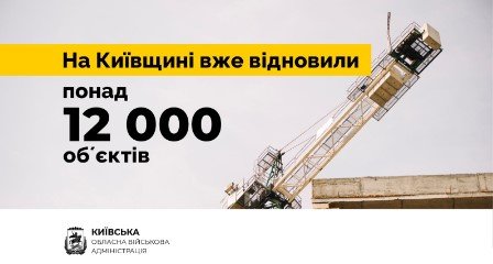 На Київщині вже відновили понад 12 тисяч об’єктів, пошкоджених внаслідок військової агресії росіян. Про це на своїй сторінці у Facebook повідомив начальник Київської обласної військової адміністрації Руслан Кравченко.