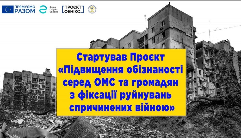 Проєкт «Підвищення обізнаності серед ОМС та громадян з фіксації руйнувань спричинених війною» реалізується Українською асоціацією районних та обласних рад в межах проєкту «Фенікс», що виконується Фондом «Східна Європа» за підтримки Європейського Союзу.