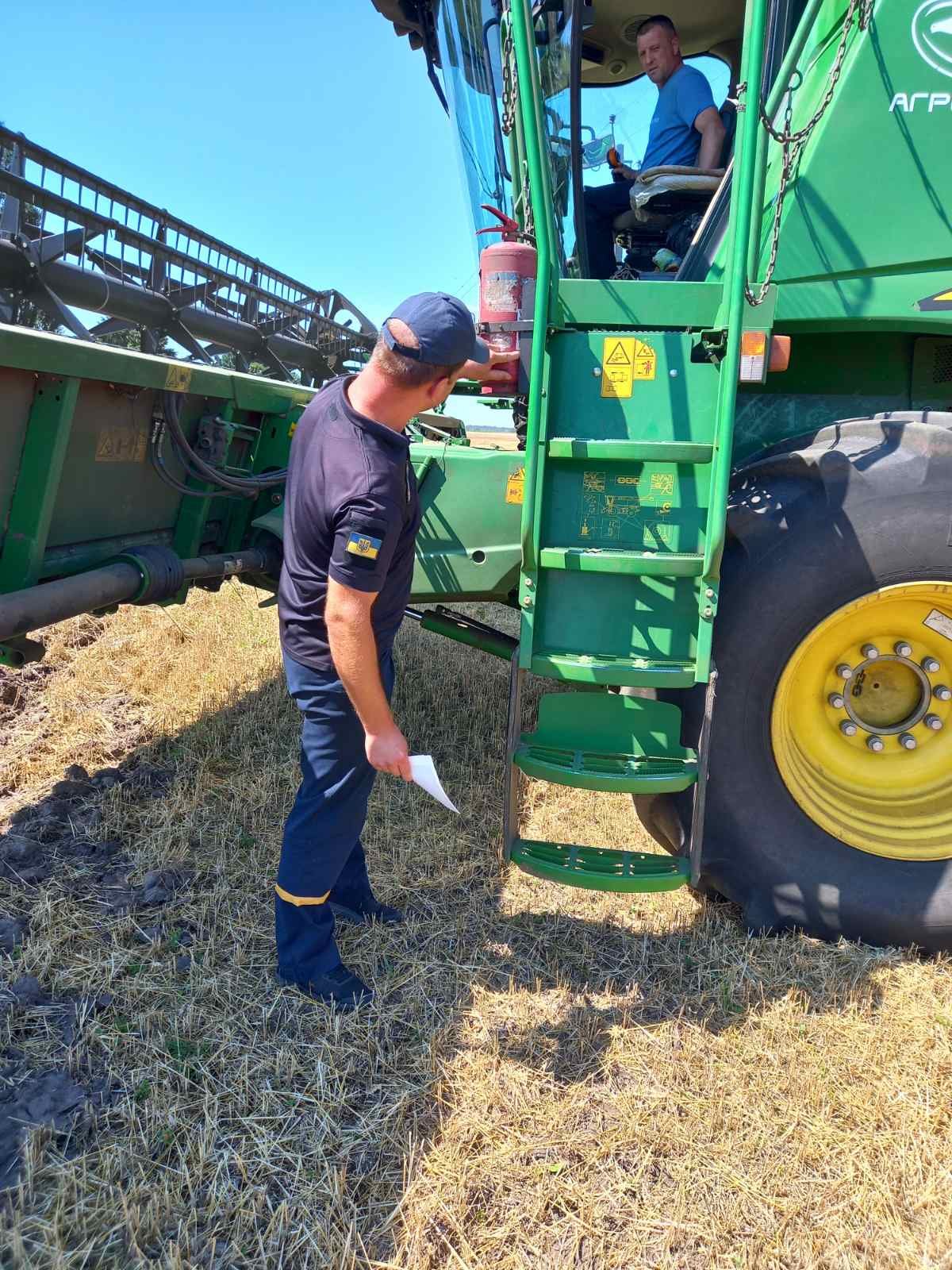Під час рейду здійснено перевірку протипожежного стану полів ранніх зернових культур, протипожежний стан сільськогосподарської техніки та місць зберігання згідно вимог.