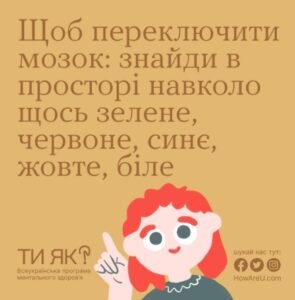 Більше інформації про техніки заспокоєння у стресових ситуаціях та багато корисного щодо ментального здоров’я дізнавайтеся тут: http://howareu.com