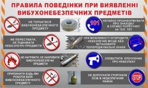 6. Категорично забороняється самостійно знешкоджувати вибухонебезпечні предмети. Це можуть робити тільки спеціально підготовлені фахівці.
