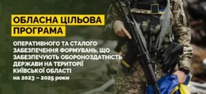 Київська ОВА розробила обласну цільову програму оперативного та сталого забезпечення формувань, що забезпечують обороноздатність держави на території Київщини. Діятиме вона впродовж 2023-2025 років. На позачерговій двадцятій сесії Київської обласної ради VIII скликання її було підтримано.