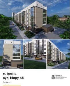 Зокрема, йдеться про будинок на вул. Миру, 16. Це один із численних житлових будинків на Київщині, який пошкоджений внаслідок бойових дій. Три під’їзди з шести дістали значних пошкоджень.
