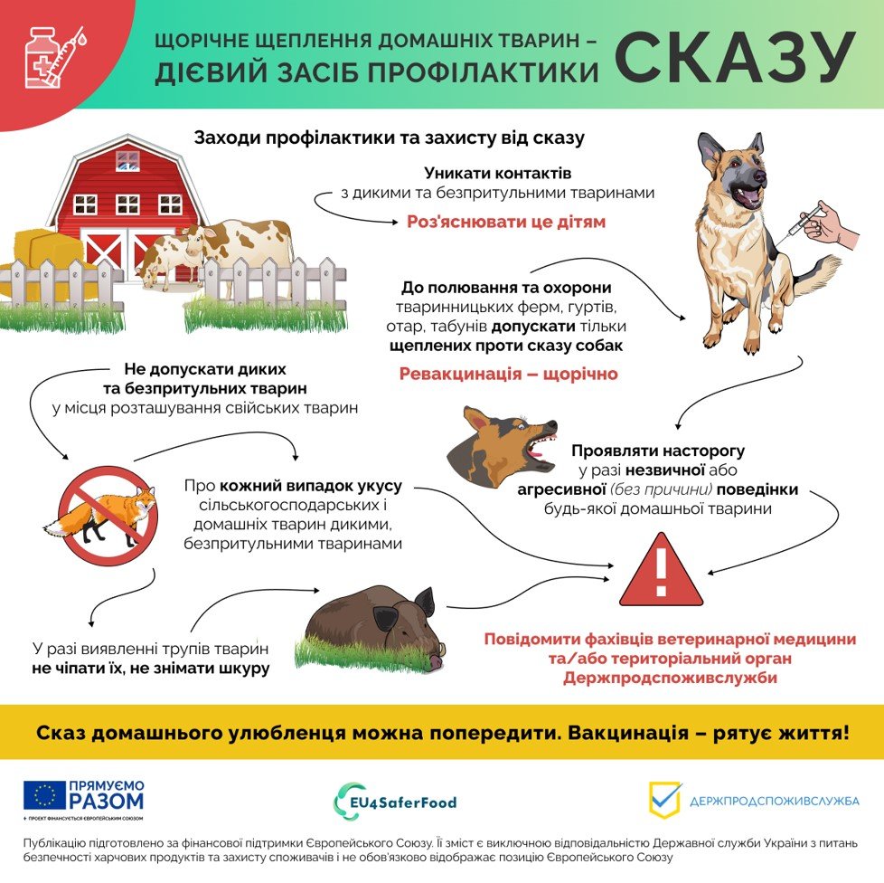 ЗВЕРТАЄМО ОСОБЛИВУ УВАГУ, ЩО ВАКЦИНУВАТИ ДОМАШНІХ ТВАРИН (СОБАК, КОТІВ) ПРОТИ СКАЗУ ПОТРІБНО ПОСТІЙНО.
