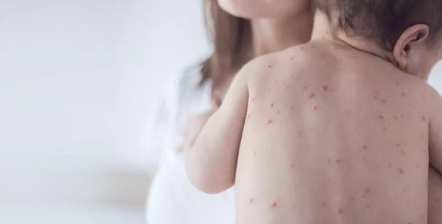 • 2-3 добу – рясне висипання на шкірі папульозного характеру, яке має різний розмір і форму, не містить всередині рідину, зливається між собою;